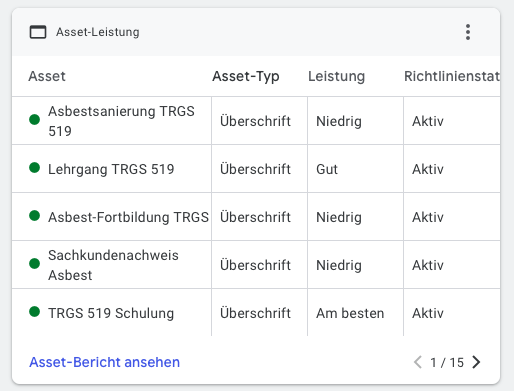 Hier ist die Monitoring von Deula Asbestsanierung auf Google ads:
