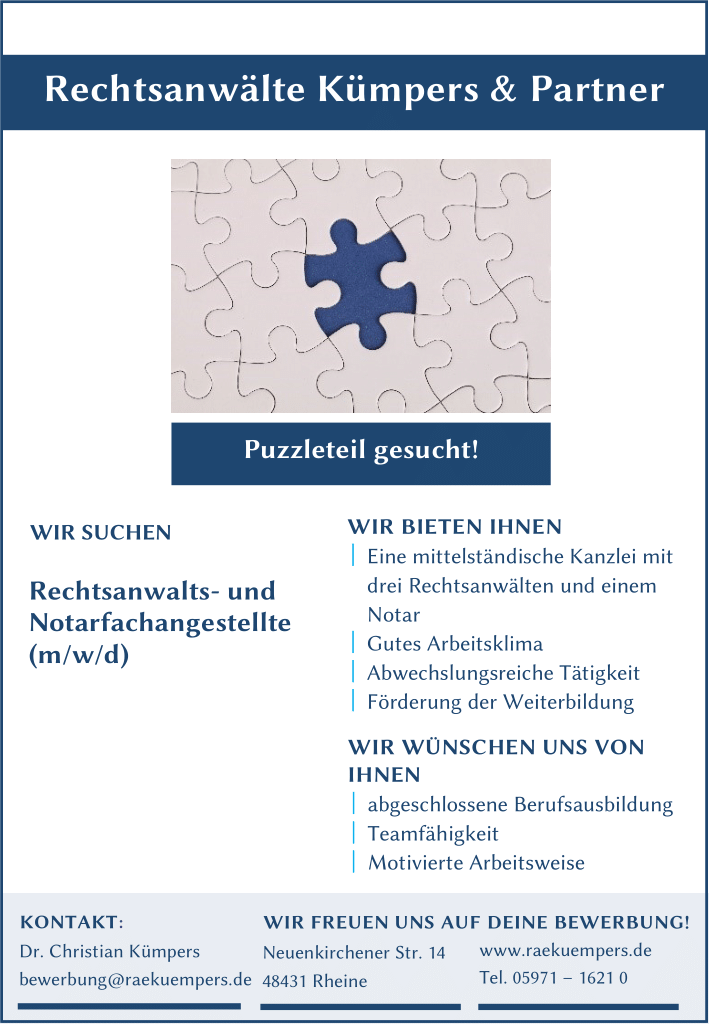 • Unterhalb von „Rechtsanwalts- und Notarfachangestellte (m/w/d) soll noch „mit Erfahrung im Notariat“ ergänzt werden