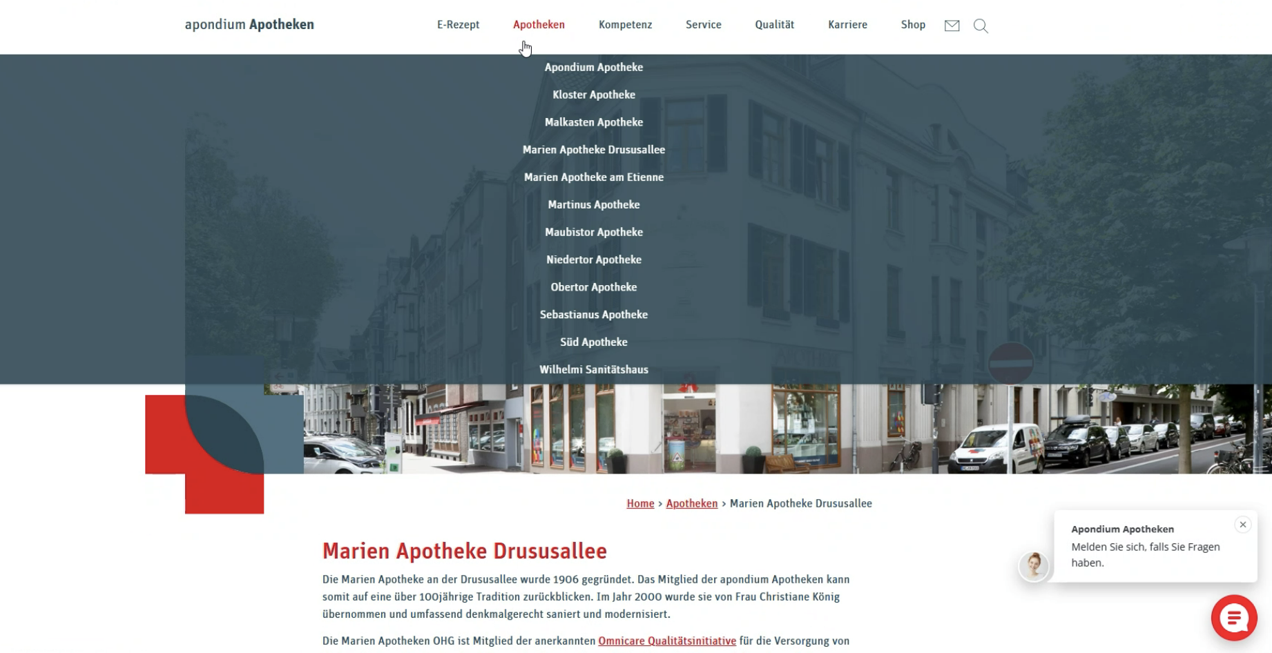 Augustinus: in einem Ärztehaus, mehr Kosmetik, neueste Apotheke sei 2021, Drive In Schalter, an einer Bundesstrasse, Kinderarzt in der Nähe